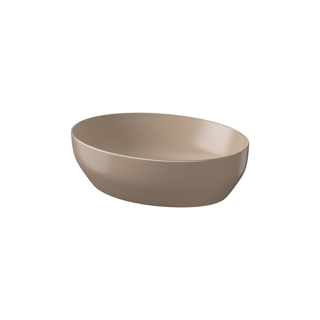 Keramické umývadlo na dosku Cersanit Larga ELLIPSE hnedá matná 50,5x38,5 cm (K677-052)