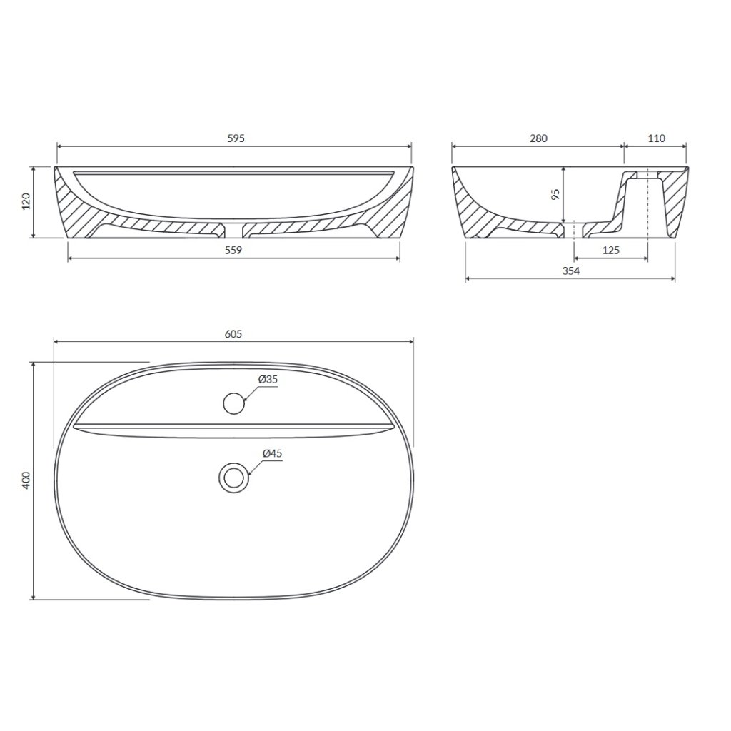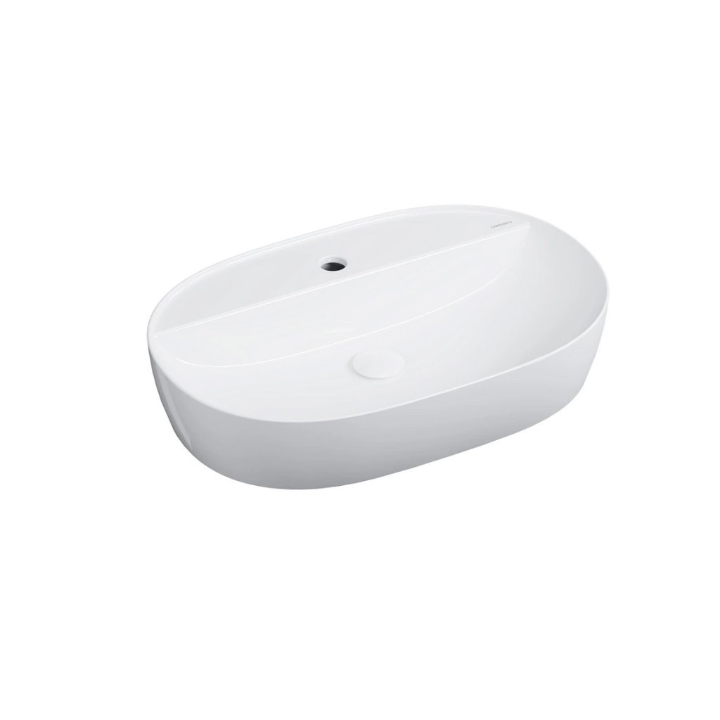 Umývadlo OMNIRES ATLANTA na dosku sa vyznačuje oválnym tvarom a zaobleným vnútrom. Jemné zaoblenia dodávajú tvaru jemnosť. Jednoduchý výrez vo vnútri vytvára funkčný priestor a umožňuje inštaláciu zvislej umývadlovej batérie.
