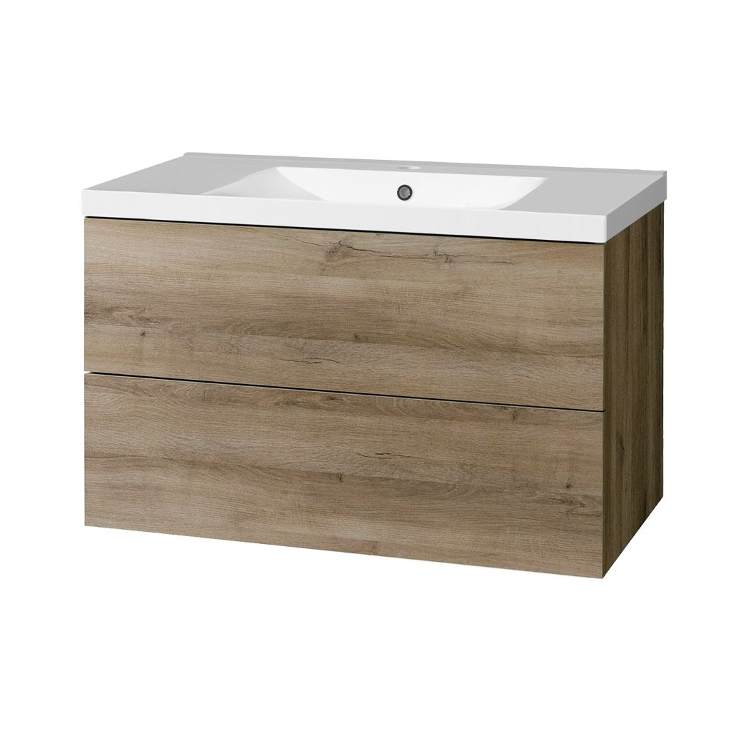 Kúpeľňová skrinka Mereo AIRA s umývadlom z liateho mramoru 101 cm - dub Halifax (CN742M)