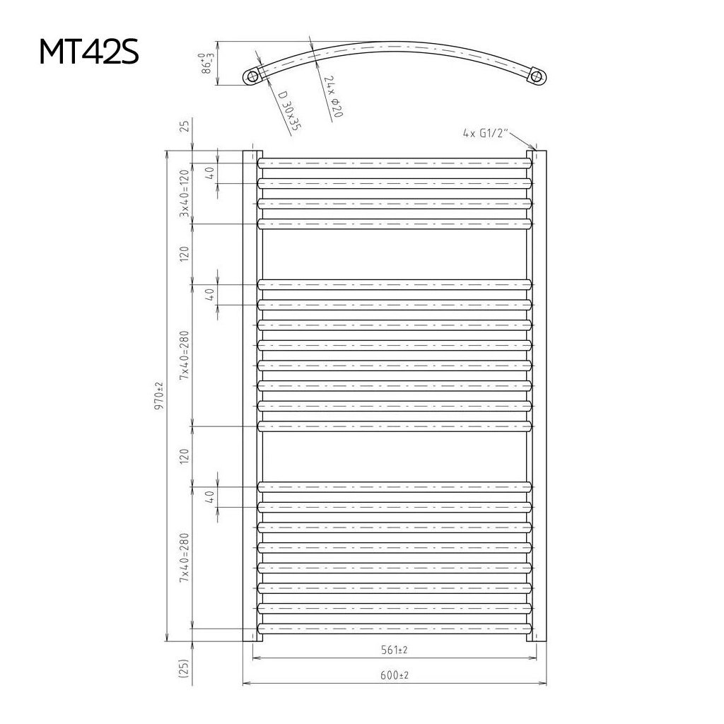 Kategória: Kúpeľňový radiátor oblý
