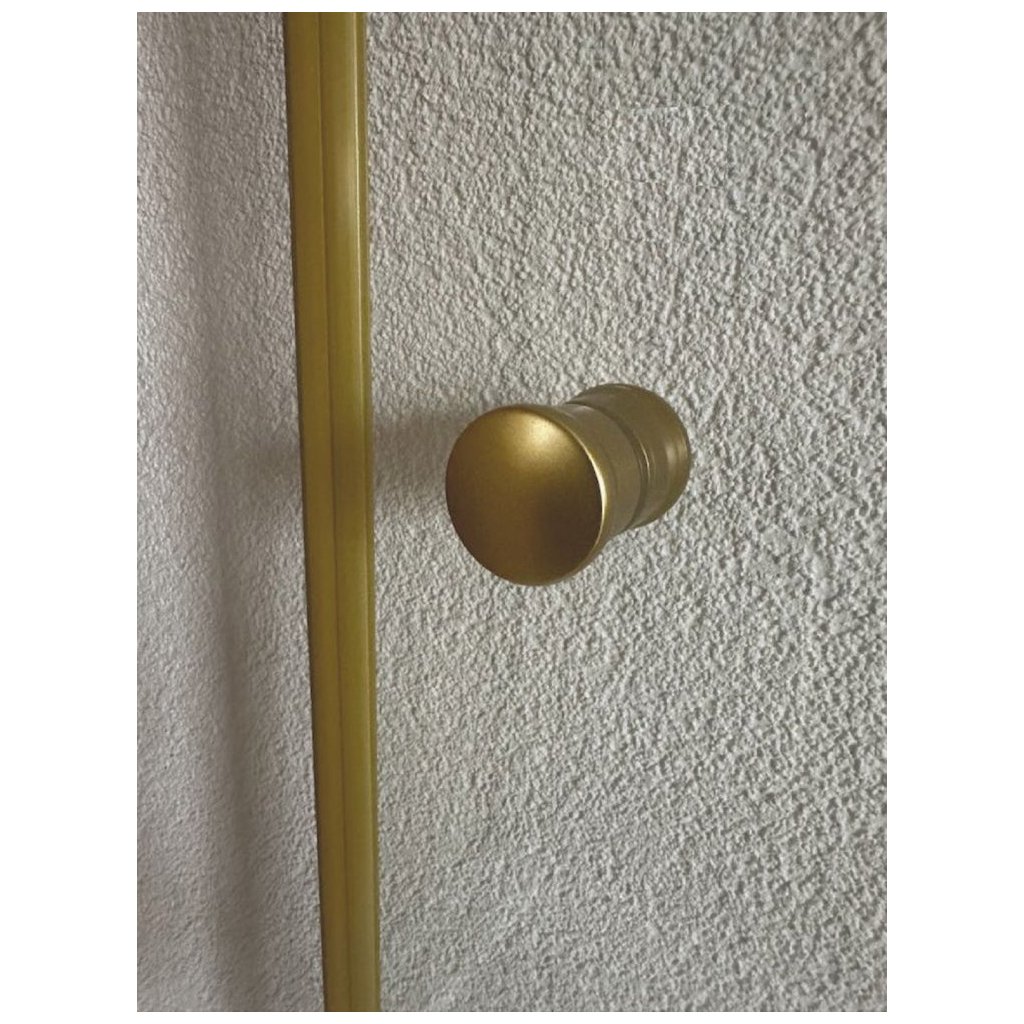 Sklo sprchovej zásteny je zhotovené z bezpečnostného transparentného skla s hrúbkou 6 mm, ktoré je vsadené do lešteného hliníkového rámu v zlatom prevedení a uzatváranie dverí je na magnetický spôsob.
