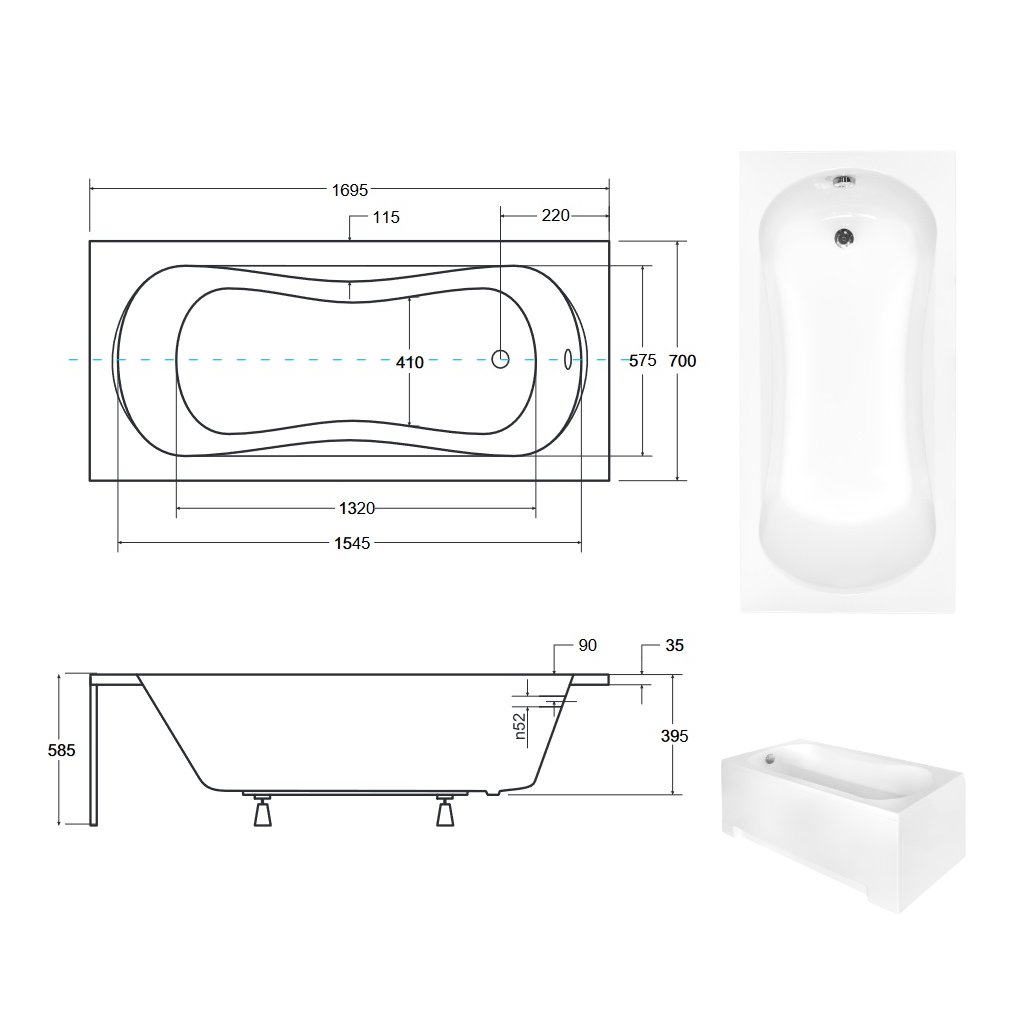 Obdĺžniková akrylátova vaňa Besco ARIA 170x70 cm (#WAA-170-PA)