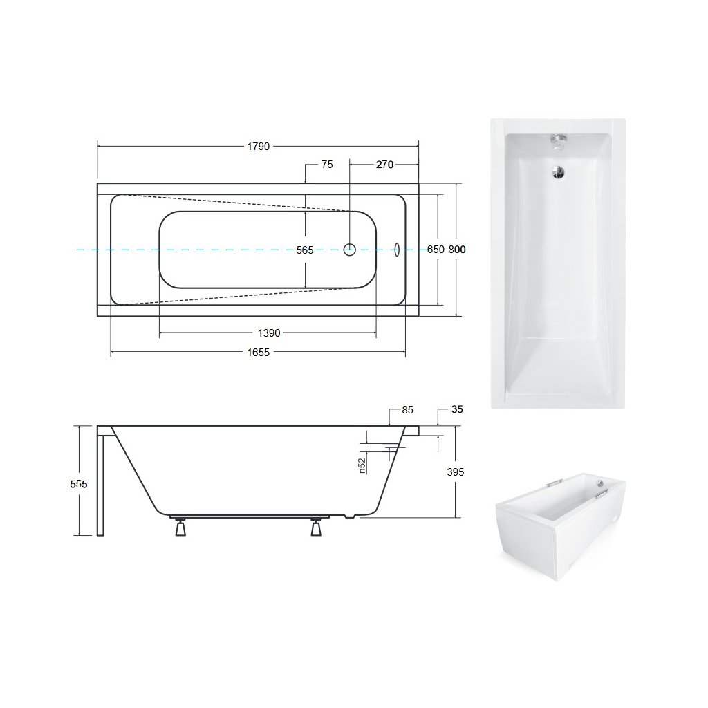 Obdĺžniková akrylátova vaňa Besco MODERN 180x80 cm (#WAM-180-MO)
