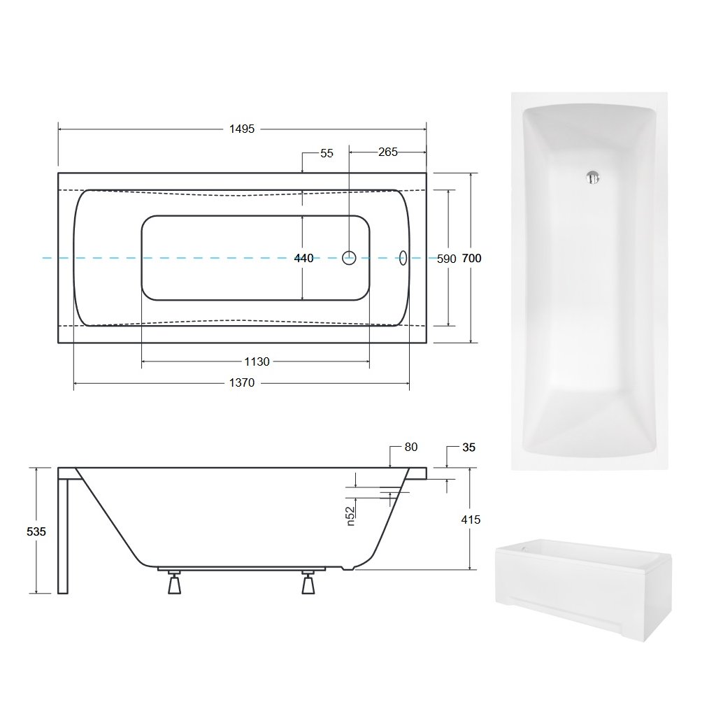 Obdĺžniková vaňa OPTIMA 140x70 cm