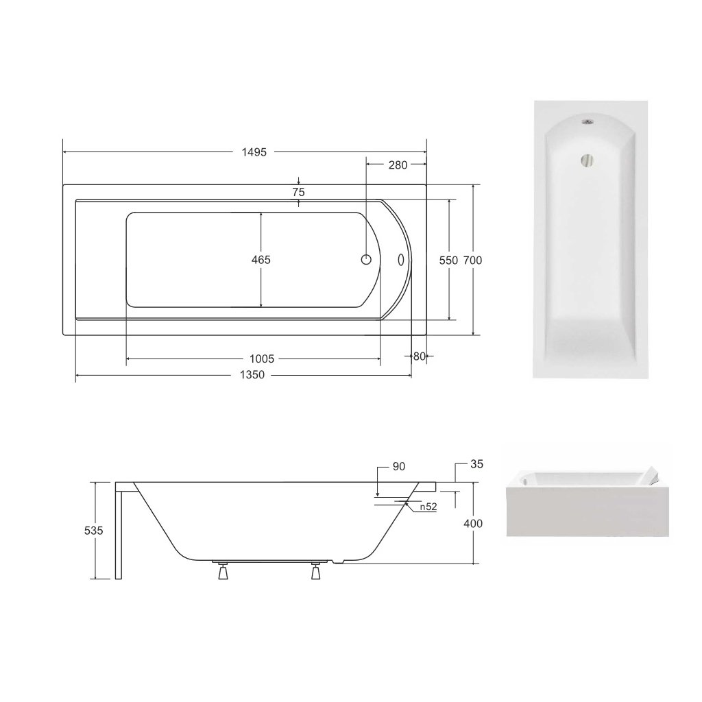 Obdĺžniková akrylátova vaňa Besco SHEA 150x70 cm (#WAS-150-PK)