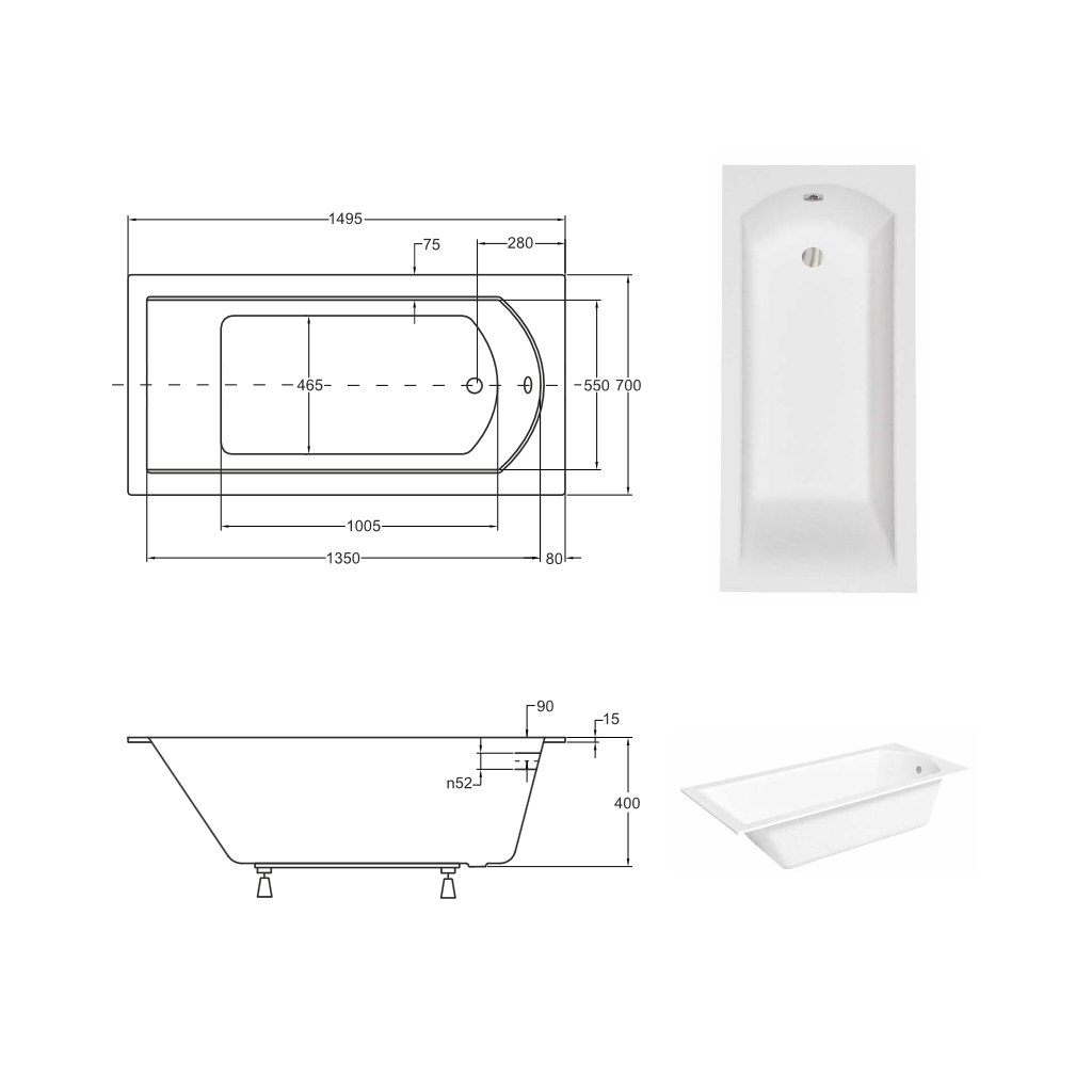 Vaňa Besco SHEA SLIM 150x70 cm - vaňa s úzkym profilom