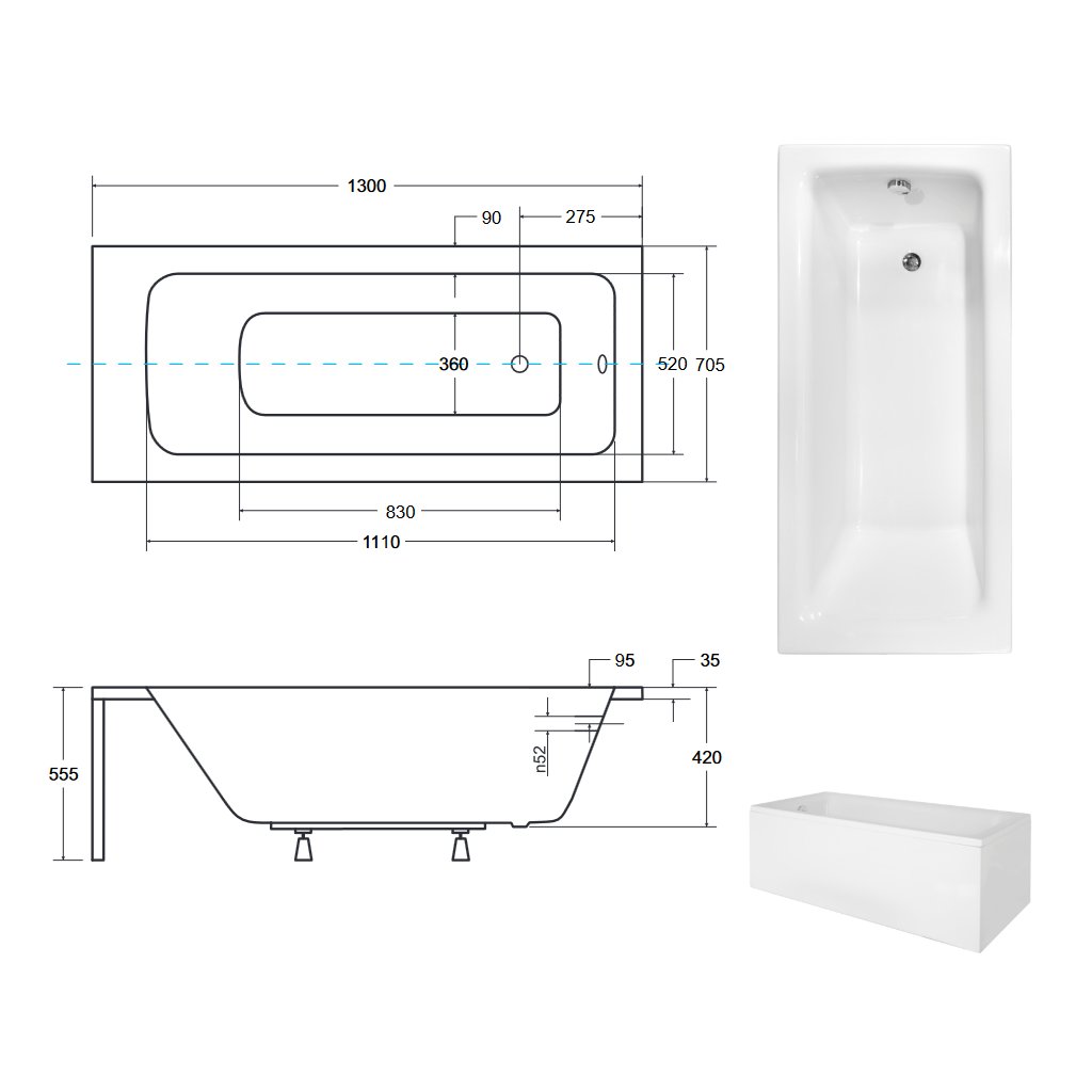 Obdĺžniková akrylátova vaňa Besco TALIA 130x70 cm (#WAT-130-PK)