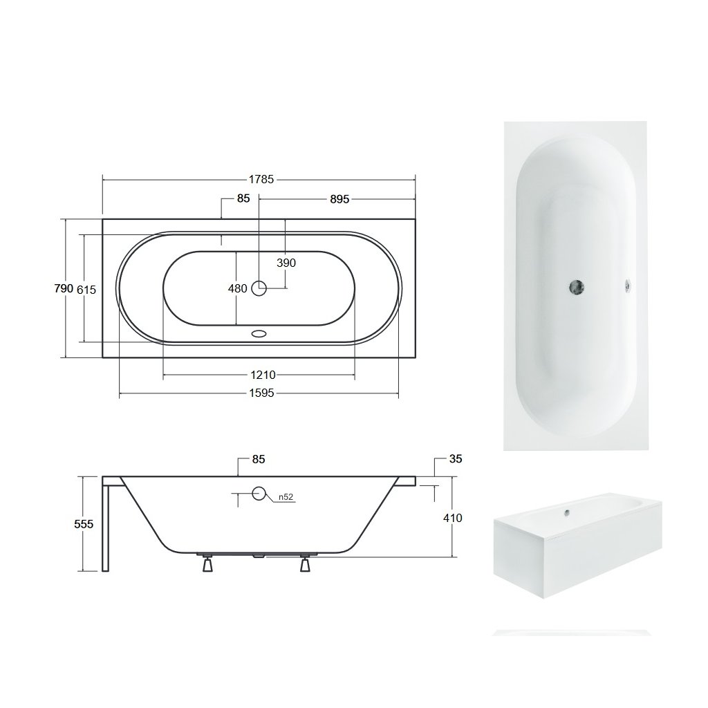 Obdĺžniková akrylátová vaňa Besco VITAE 180x80 cm (#WAV-180-PK)