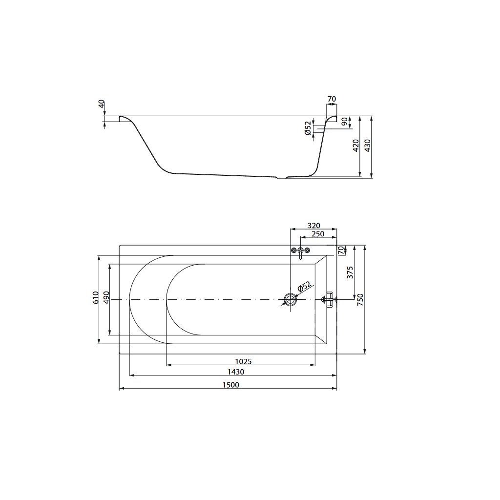 Obdĺžniková akrylátová vaňa Cersanit CITY 150×75 (S301-334)