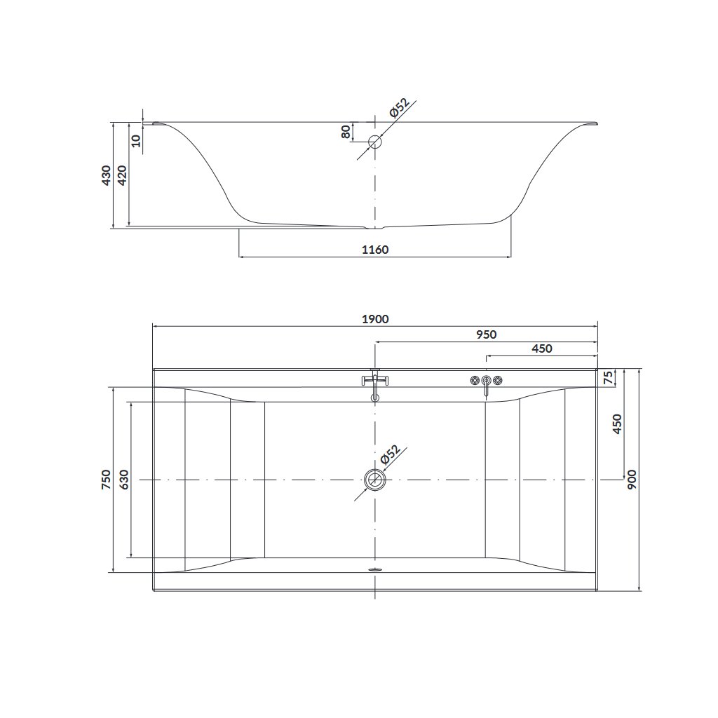 Vaňa LARGA obsahuje nohy, ktoré umožňujú nastavenie výšky. Sifón nie je súčasťou vane.