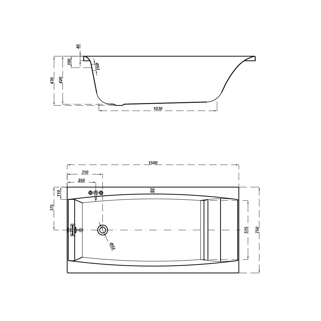 Obdĺžniková akrylátova vaňa Cersanit VIRGO 150x75 cm (S301-048)