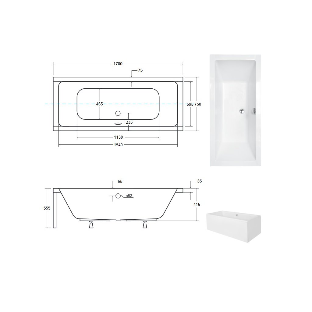 Obdĺžniková hydromasážna vaňa Sanovo ASTER AIR pneu 170x75 cm (AST_17075A)