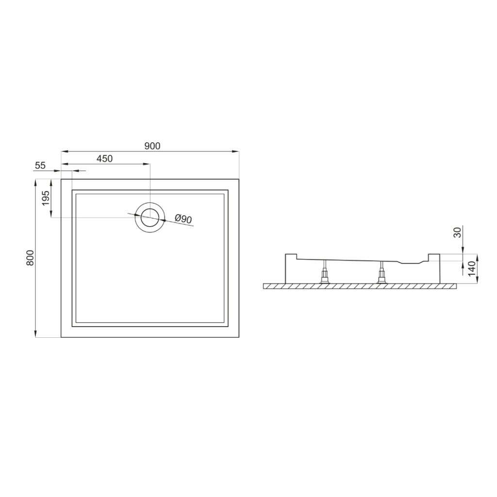 Obdĺžniková sprchová vanička z akrylátu Sanovo TENOR 90x80x14 cm (00366)