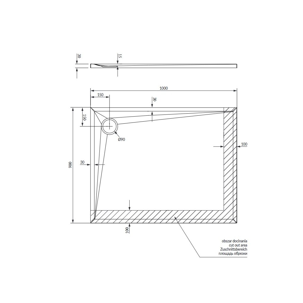 Obdĺžniková sprchová vanička z kompozitu OMNIRES STONE 90x100 cm