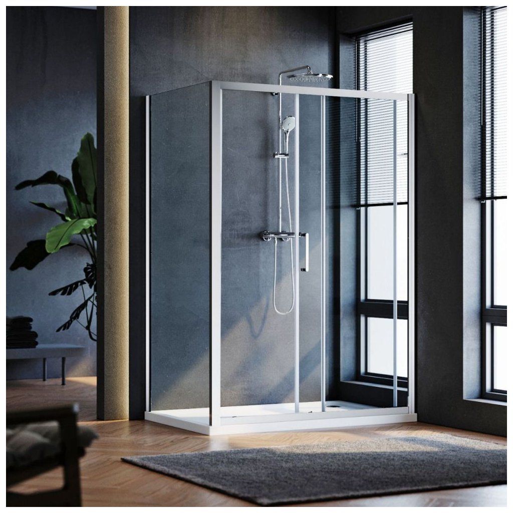 Obdĺžnikový sprchový kút Delivery Kombi je možné inštalovať na pravú alebo ľavú stranu. Sprchový kút môžete inštalovať na sprchovú vaničku alebo priamo na rovnú podlahu.