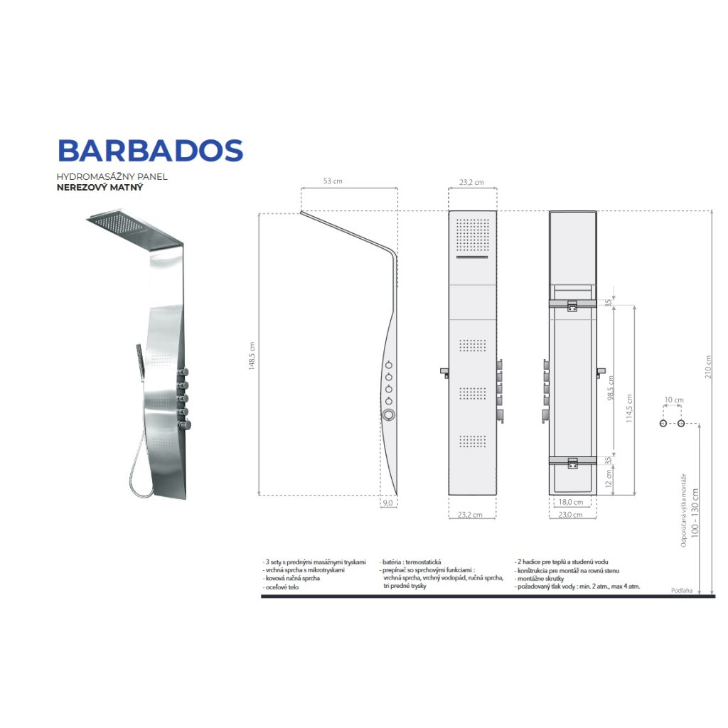 Oceľový sprchový panel BARBADOS s termostatickou batériou