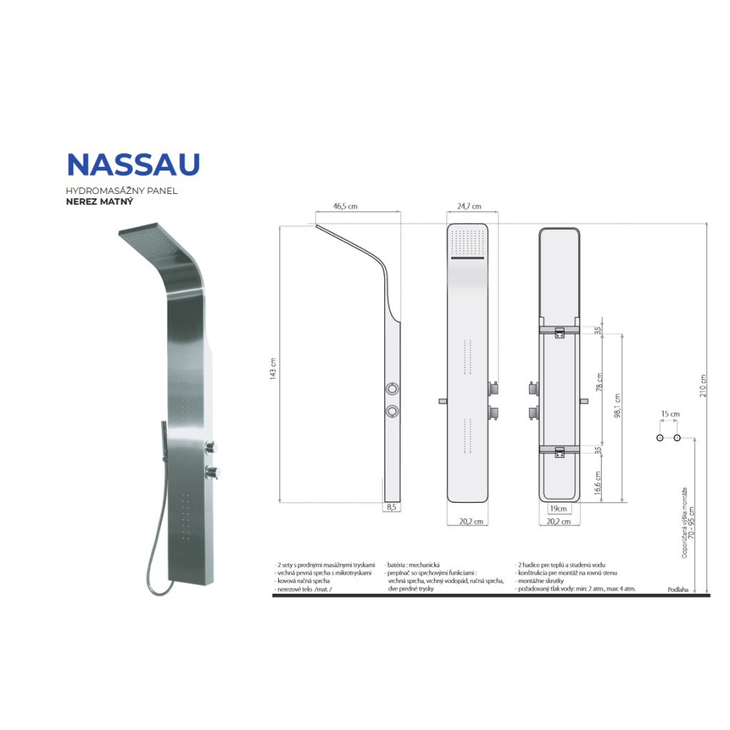 Oceľový sprchový panel NASSAU s mechanickou batériou