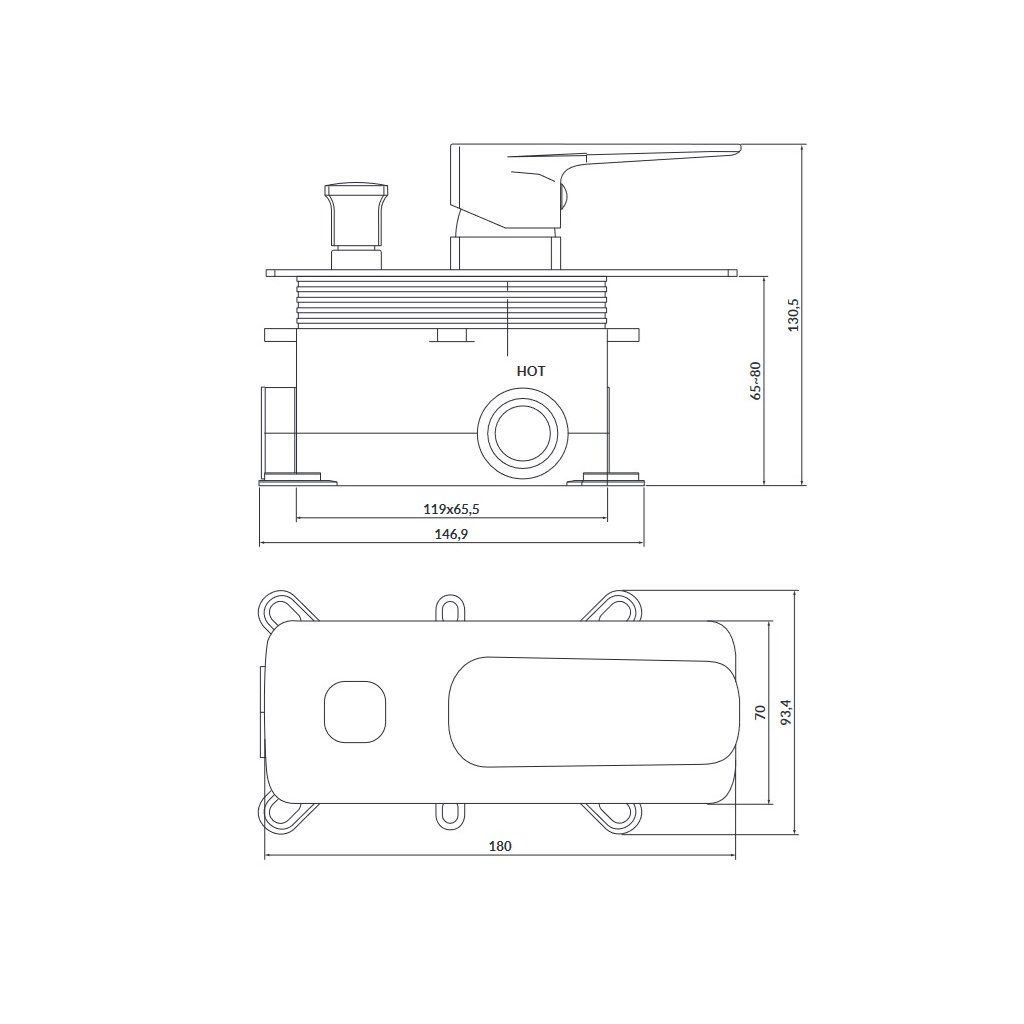 - súčasťou batérie je montážne telesom s chrómovým krytom boxu