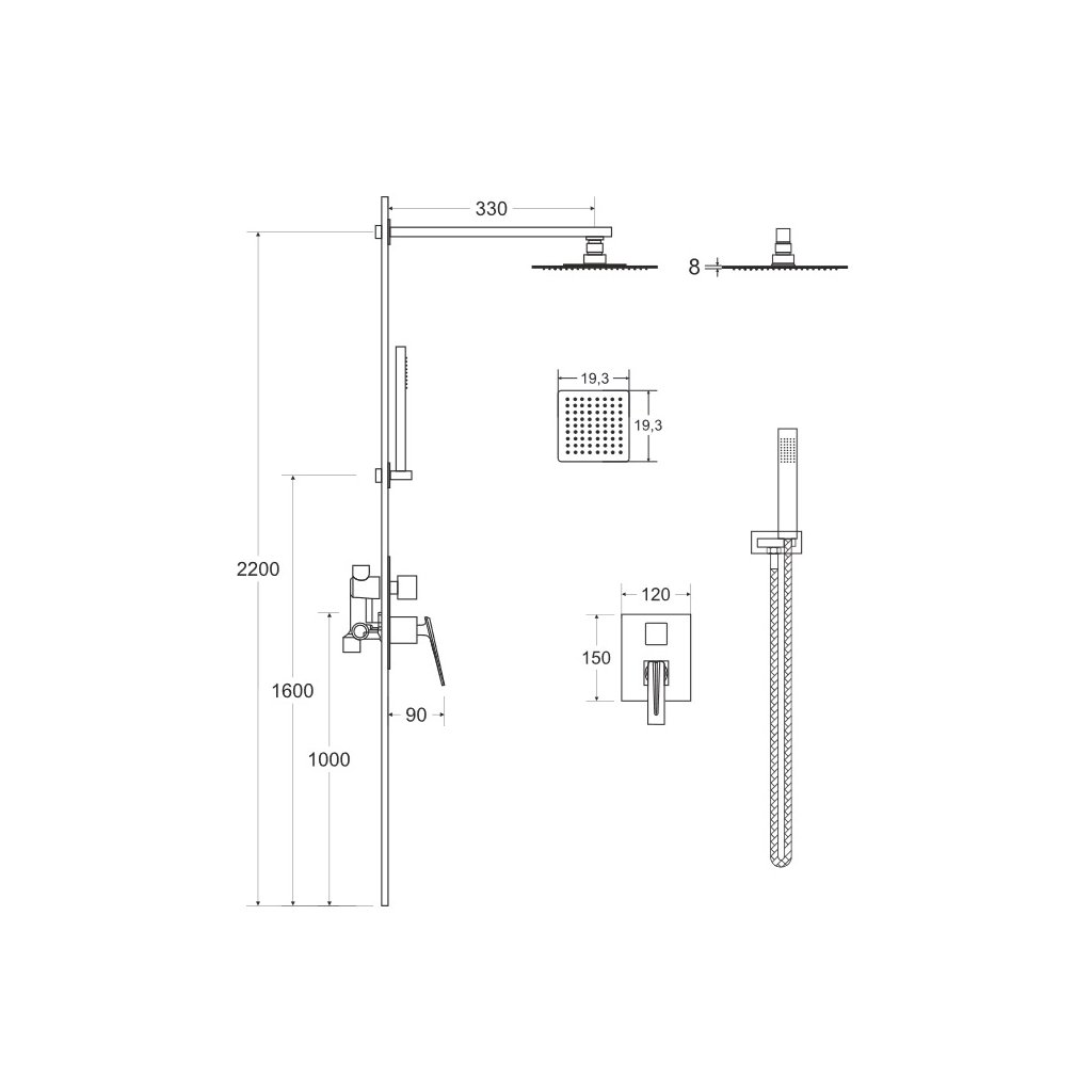 - rozmery dažďovej sprchy: 20 x 20 cm