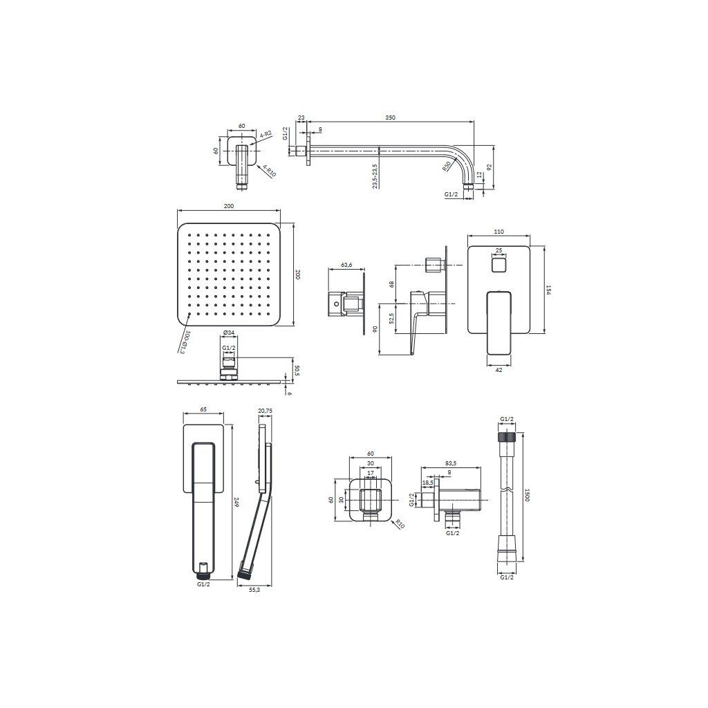 - mosadzná sprchová hlavica (WG220/OGR), rozmery: 20 x 20 cm