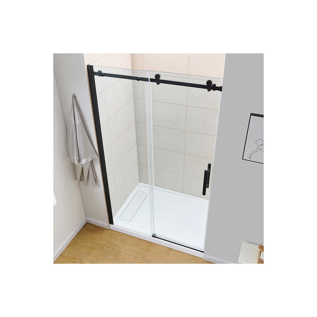 Posuvné sprchové dvere s veľkým posuvným systémom v čiernom prevedení.