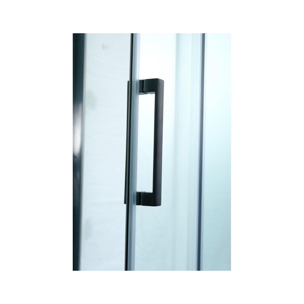 Posuvné sprchové dvere s veľkým posuvným systémom v čiernom prevedení.