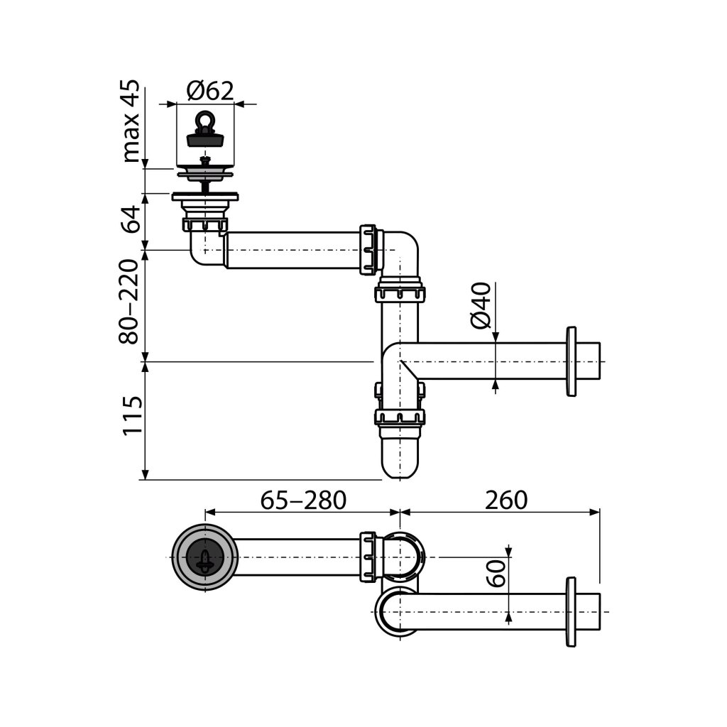 Priestorovo úsporný umývadlový sifón DN63 (A413)