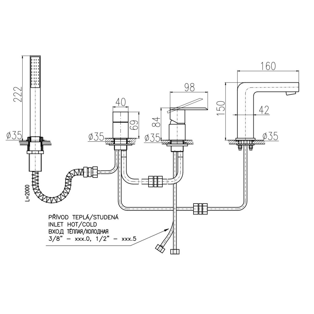 Typ pripojenia hadic: - "0" - pripojenie flexi hadíc 3/8"