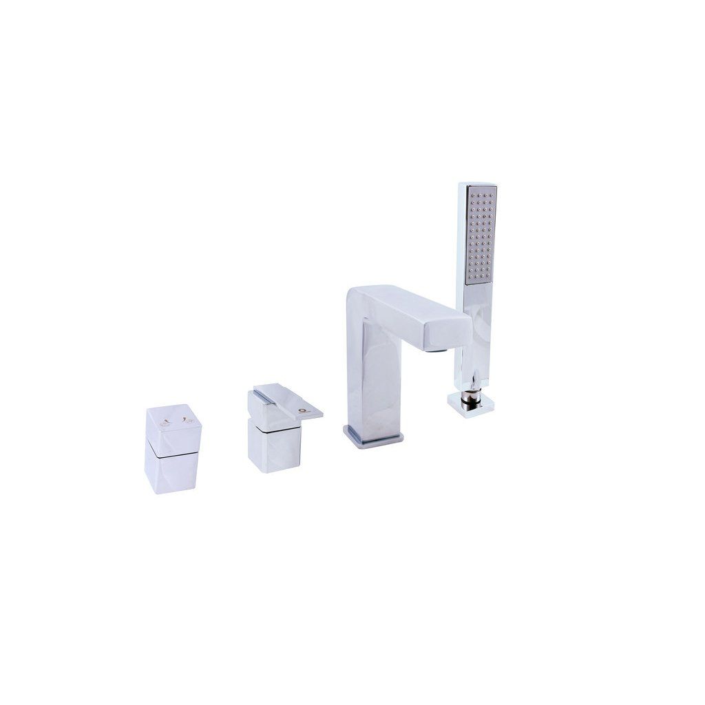 Vodovodná batéria vaňová stojanková štvorotvorová s keramickým prepínačom, samonavíjacou 2 m hadicou a sprchou.
