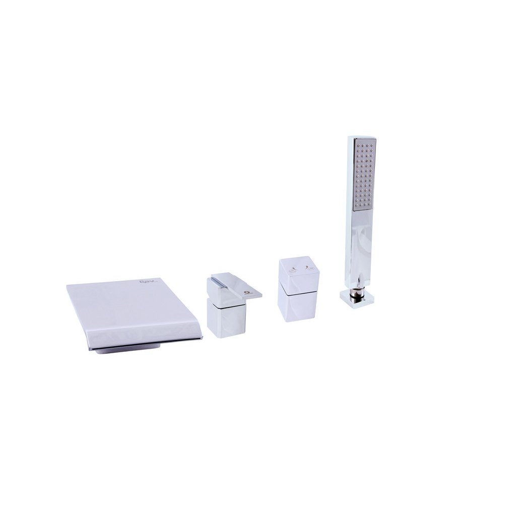 Vodovodná batéria vaňová stojanková štvorotvorová s keramickým prepínačom, samonavíjacou 2 m hadicou a sprchou.