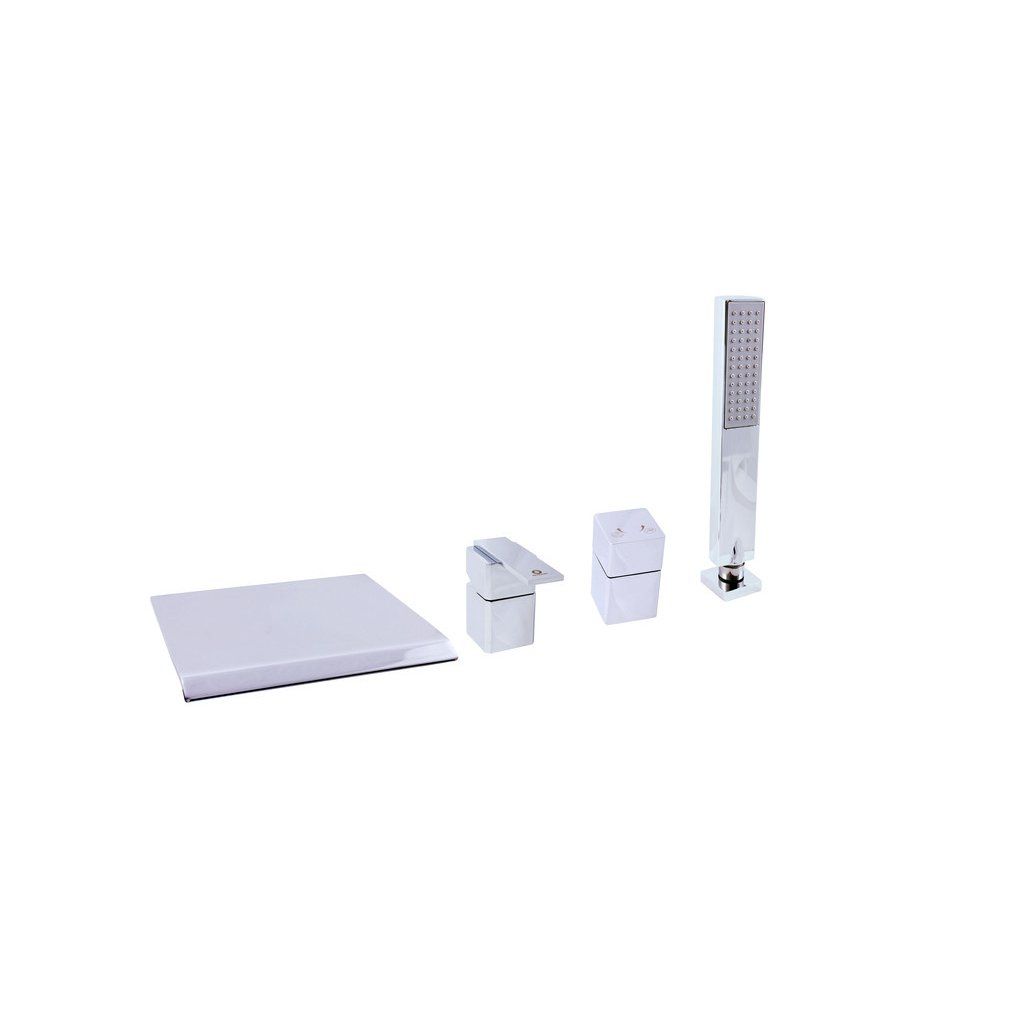 Vodovodná batéria vaňová stojanková štvorotvorová s keramickým prepínačom, samonavíjacou 2 m hadicou a sprchou.