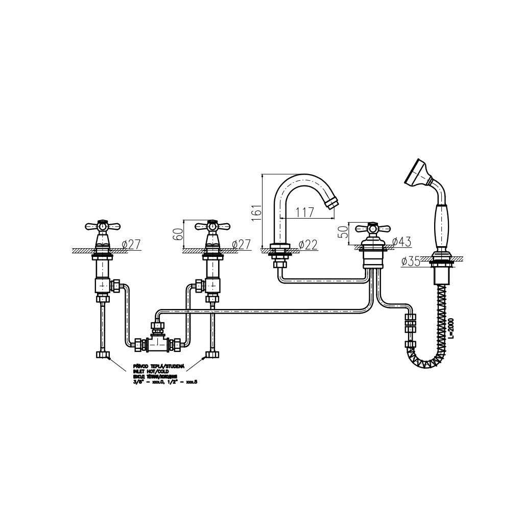 RAV - Slezák MORAVA RETRO - vodovodná batéria na okraj vane MK162.0P