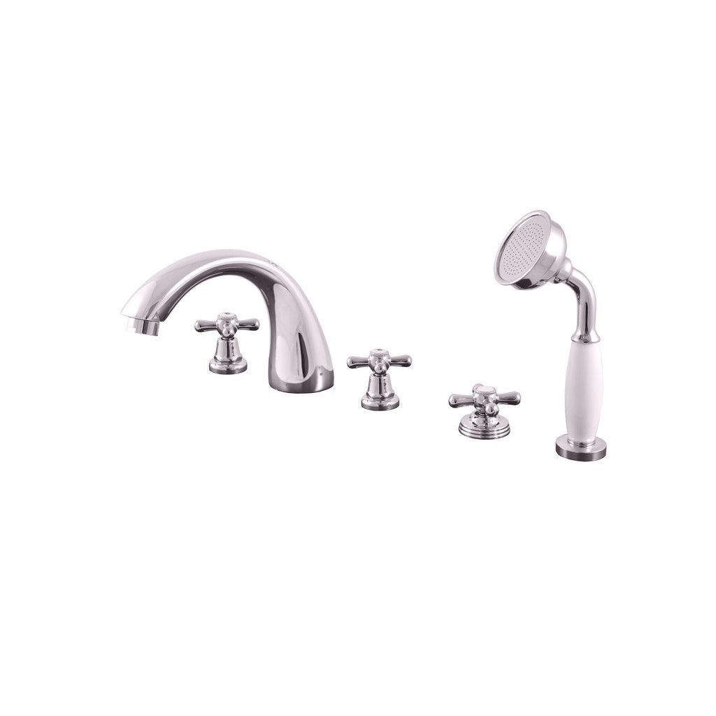 Vodovodní baterie vanová stojánková pětiotvorová s keramickým přepínačem, samonavíjecí sprchou a 2m hadicí.