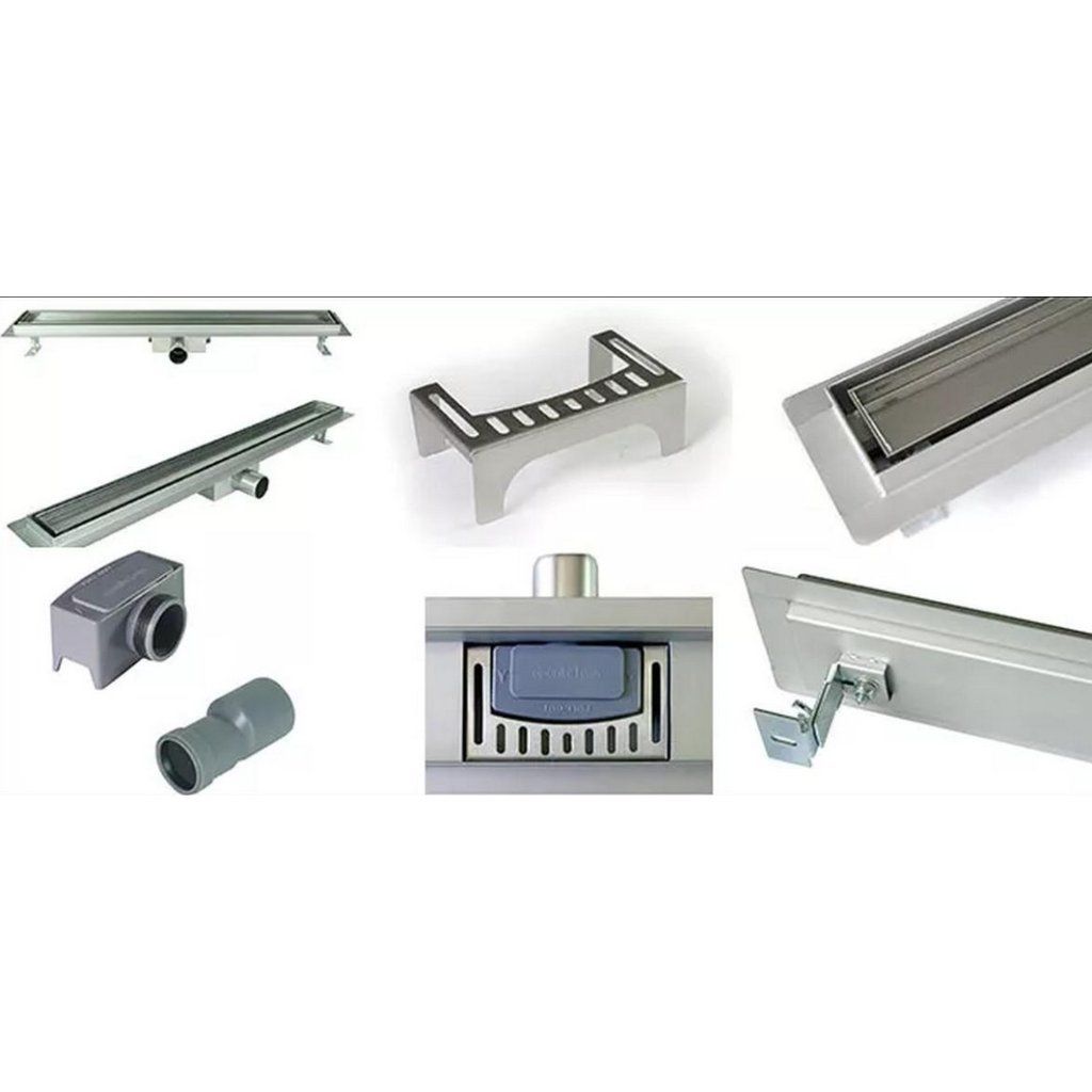 Sprchový žľab je celý vyrobený z kvalitnej nehrdzavejúcej ocele (nerezu) AISI 304 s hrúbkou 1,2mm (mriežka hrúbky 1,5mm).