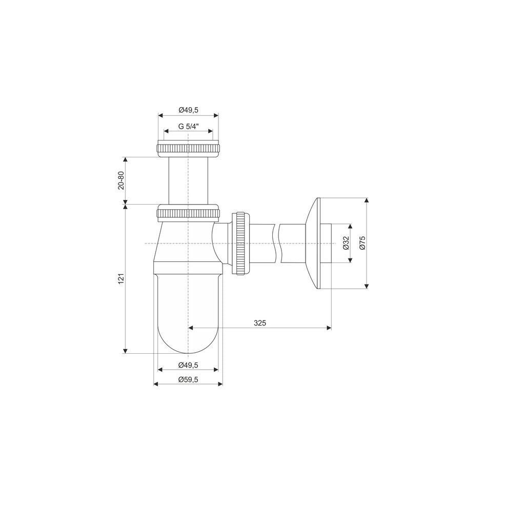 Sifón umývadlový, celokovový s maticou, pochrómovaná mosadz, 5/4"x ø 32 mm