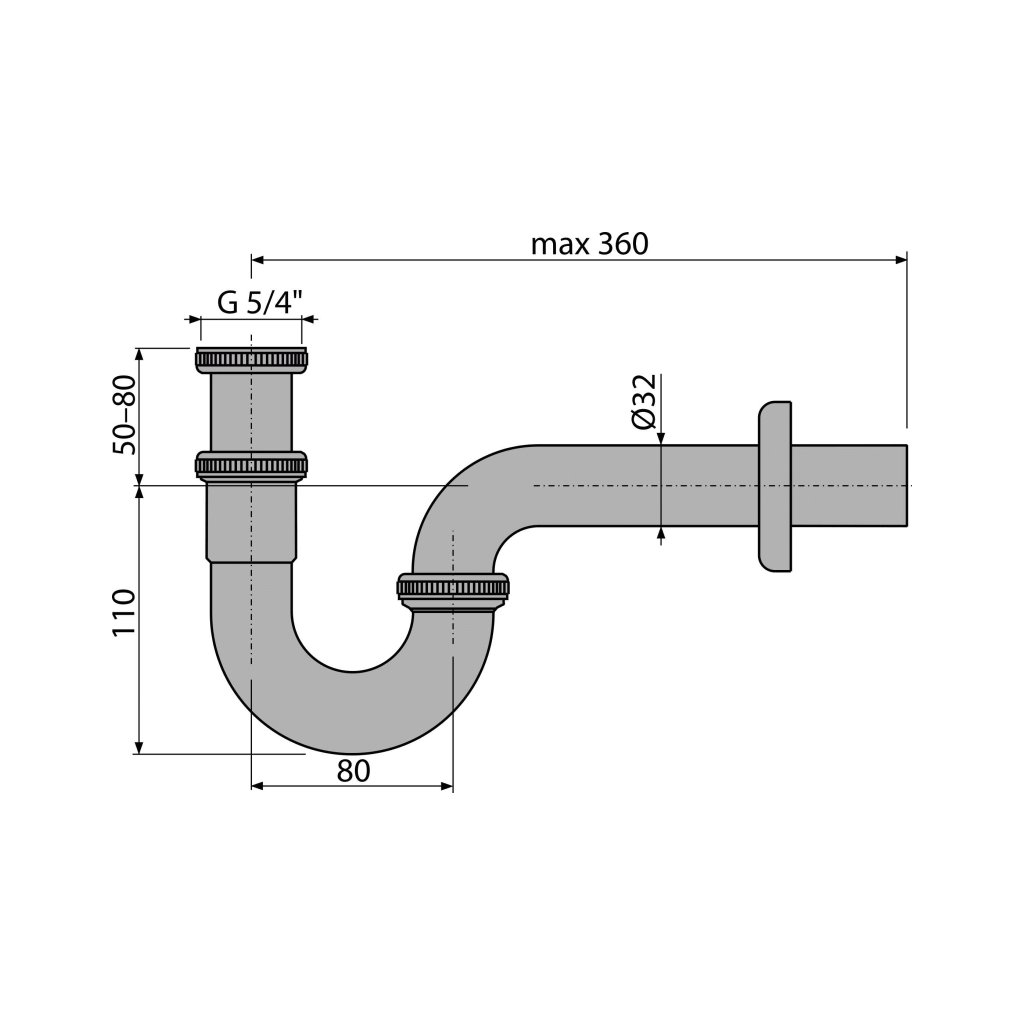 Sifón umývadlový „U“ DN32 s prevlečnou maticou 5/4", kov (A432)