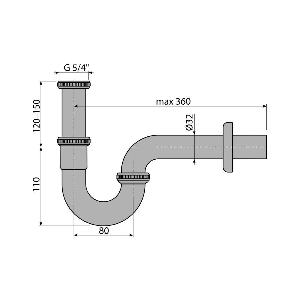 Sifón umývadlový „U“ DN32 s prevlečnou maticou 5/4", kov (A4320)