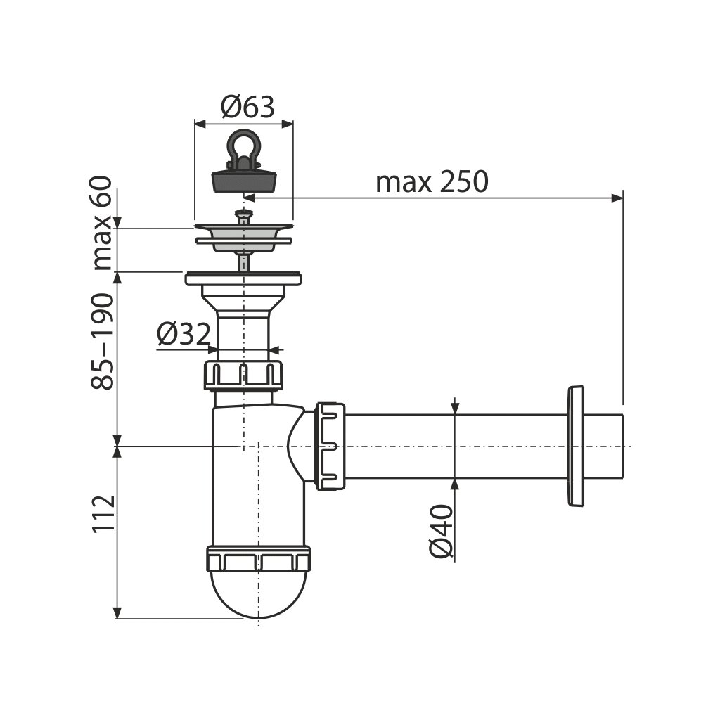 Sifón umývadlový DN40 s nerezovou mriežkou DN63 (A41)