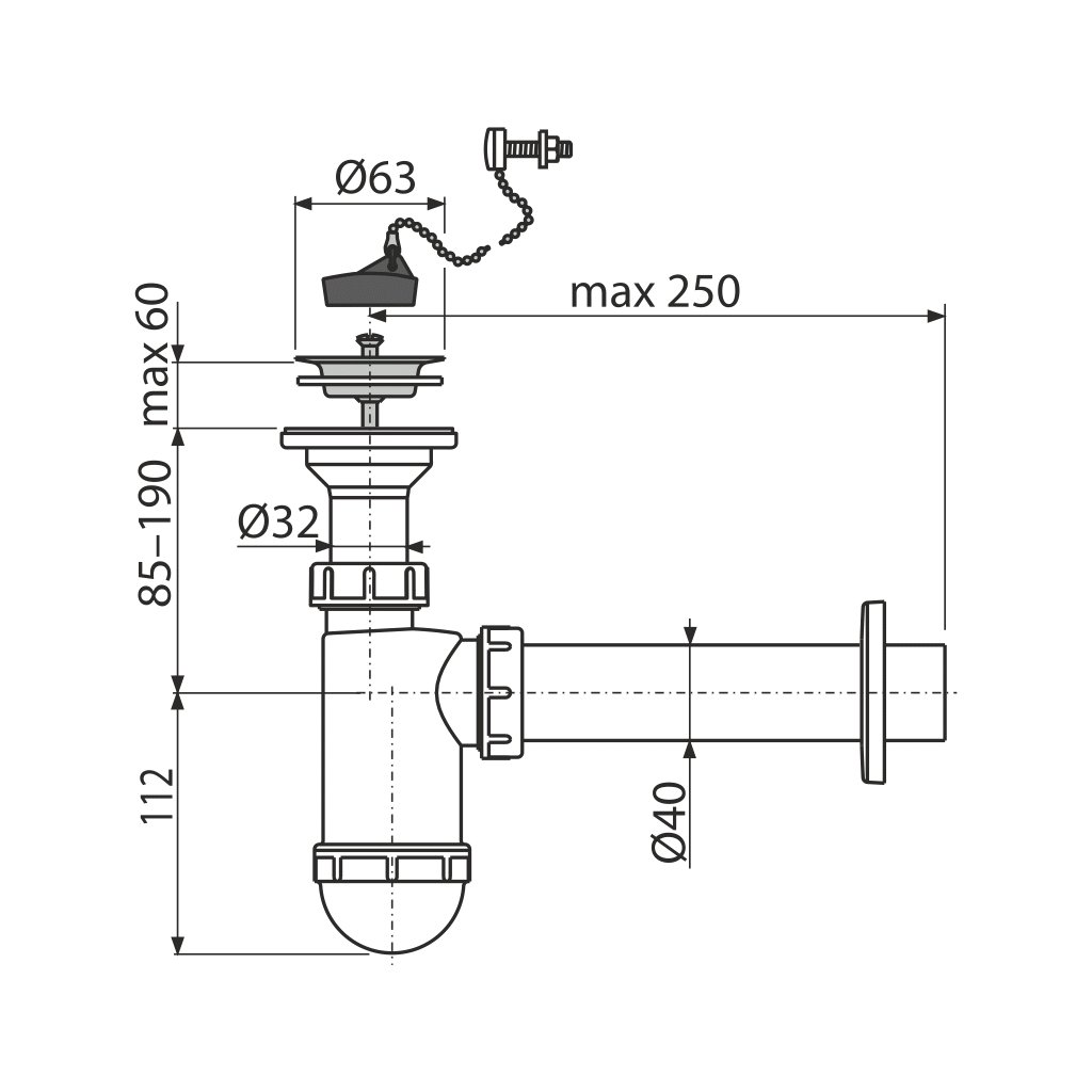 Sifón umývadlový DN40 s nerezovou mriežkou DN63, retiazka (A41R)