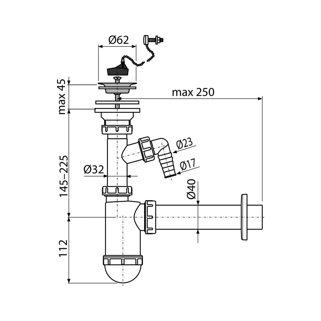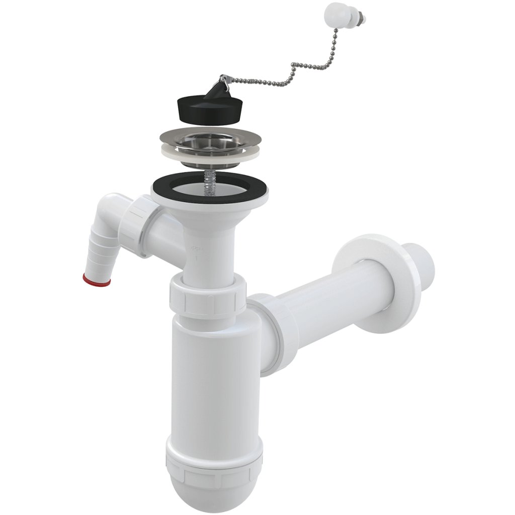 Sifón umývadlový DN40 s prípojkou a nerezovou mriežkou DN63 (A41P) + retiazka