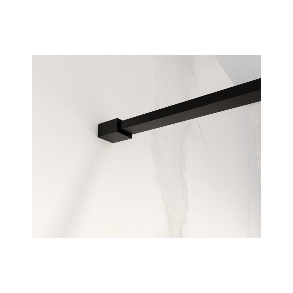 Sprchová zástena walk-in Single je vyrobená z 8 mm číreho tvrdeného bezpečnostného skla, ktoré je ku stene pripevnené s čiernom vzperou na protilahlu stenu. Horná hranatá vzpera zabezpečuje maximálnu pevnosť a stabilitu sprchovej zásteny pri jeho každodennom používaní.