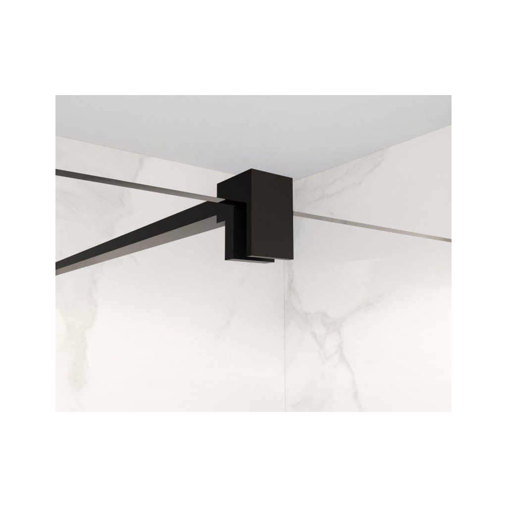 Sprchová zástena walk-in Single je vyrobená z 8 mm číreho tvrdeného bezpečnostného skla, ktoré je ku stene pripevnené s čiernom vzperou na protilahlu stenu. Horná hranatá vzpera zabezpečuje maximálnu pevnosť a stabilitu sprchovej zásteny pri jeho každodennom používaní.