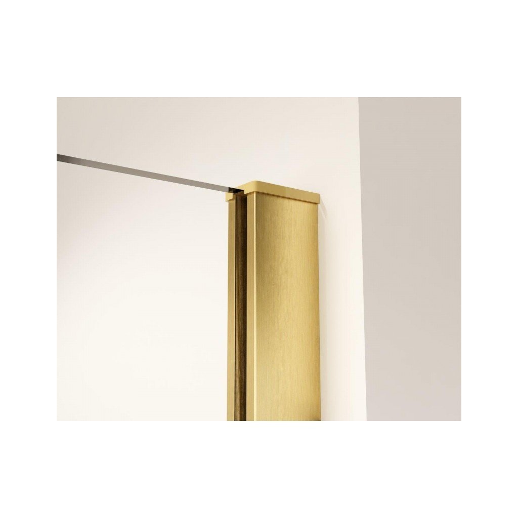 Sprchová zástena walk-in Single je vyrobená z 8 mm číreho tvrdeného bezpečnostného skla, ktoré je ku stene pripevnené so zlatou vzperou na protiľahlú stenu. Horná hranatá vzpera zabezpečuje maximálnu pevnosť a stabilitu sprchovej zásteny pri jeho každodennom používaní.