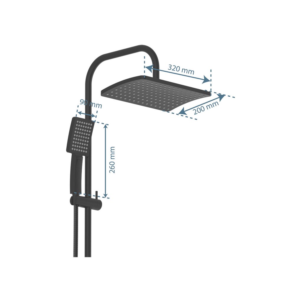 - horná sprcha: čierny plast, 320 x 200 mm, 1 typ prúdu