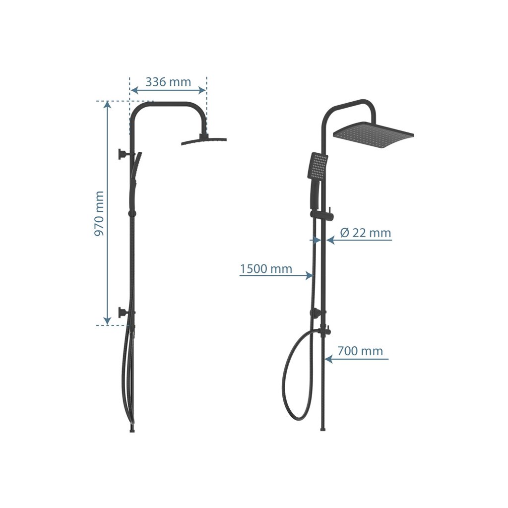 - sprchová tyč: čierna nehrdzavejúca oceľ dĺžka 970 mm