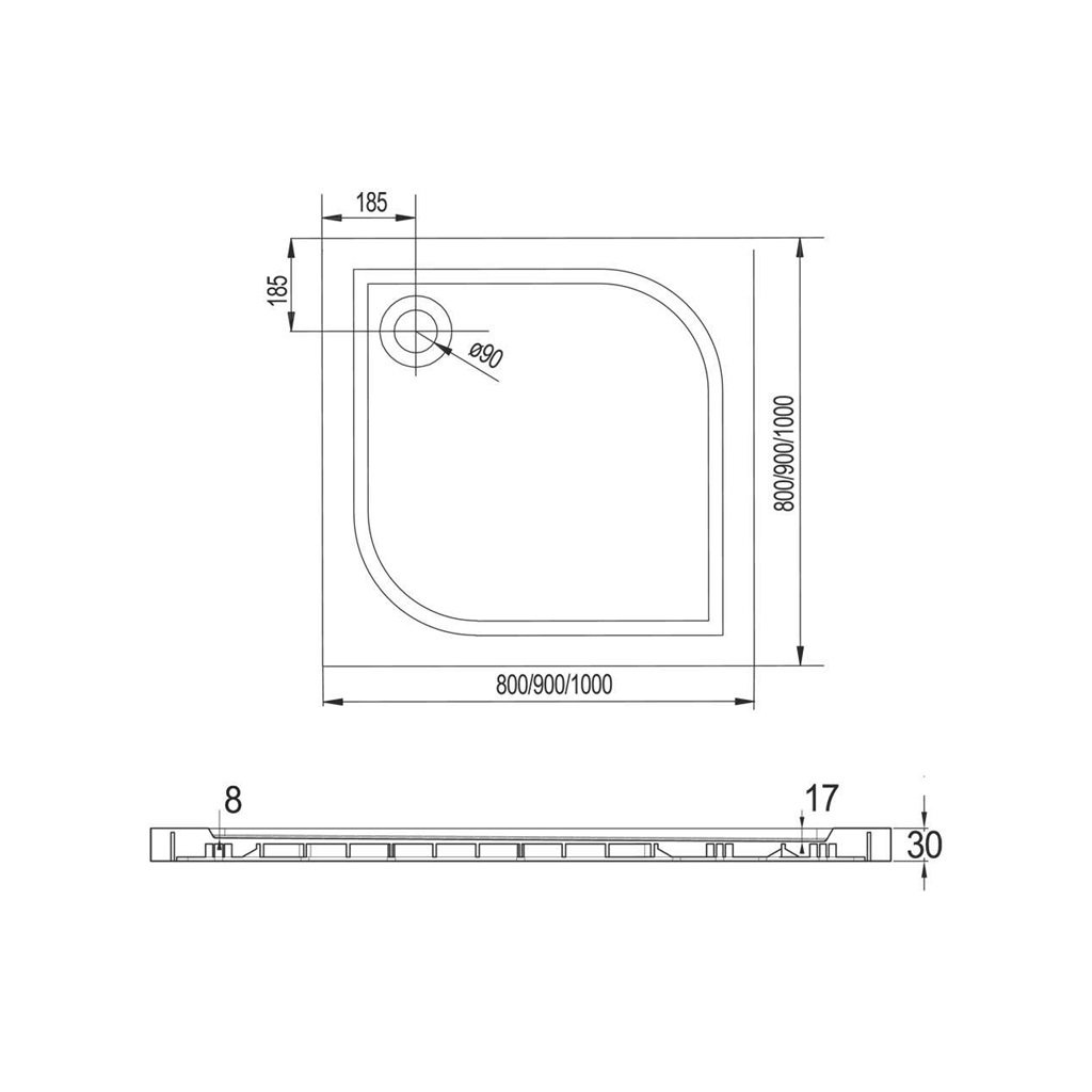 Štvorcová sprchová vanička z liateho mramoru Sanovo LUNA 80x80x3 cm