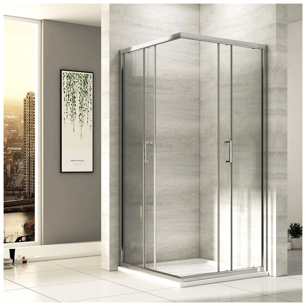 Praktický a elegantný štvorcový sprchový kút Sanovo Delivery. Vyniká svojimi zdvojenými kolieskami, v hrúbke skla a kovovou rúčkou pre ľahké otváranie sprchových dverí.