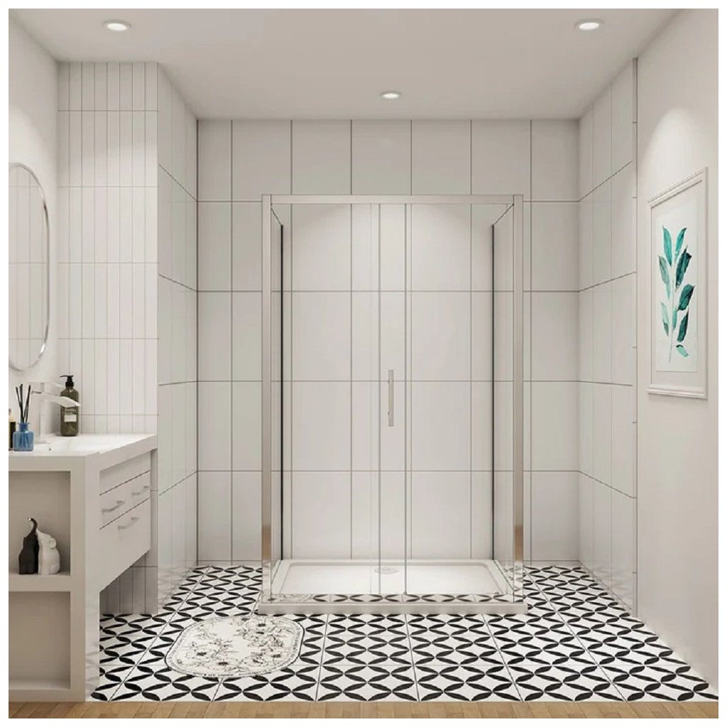 Nástenný sprchový kút predstavuje dva pevné bočné diely a posuvné sprchové dvere.