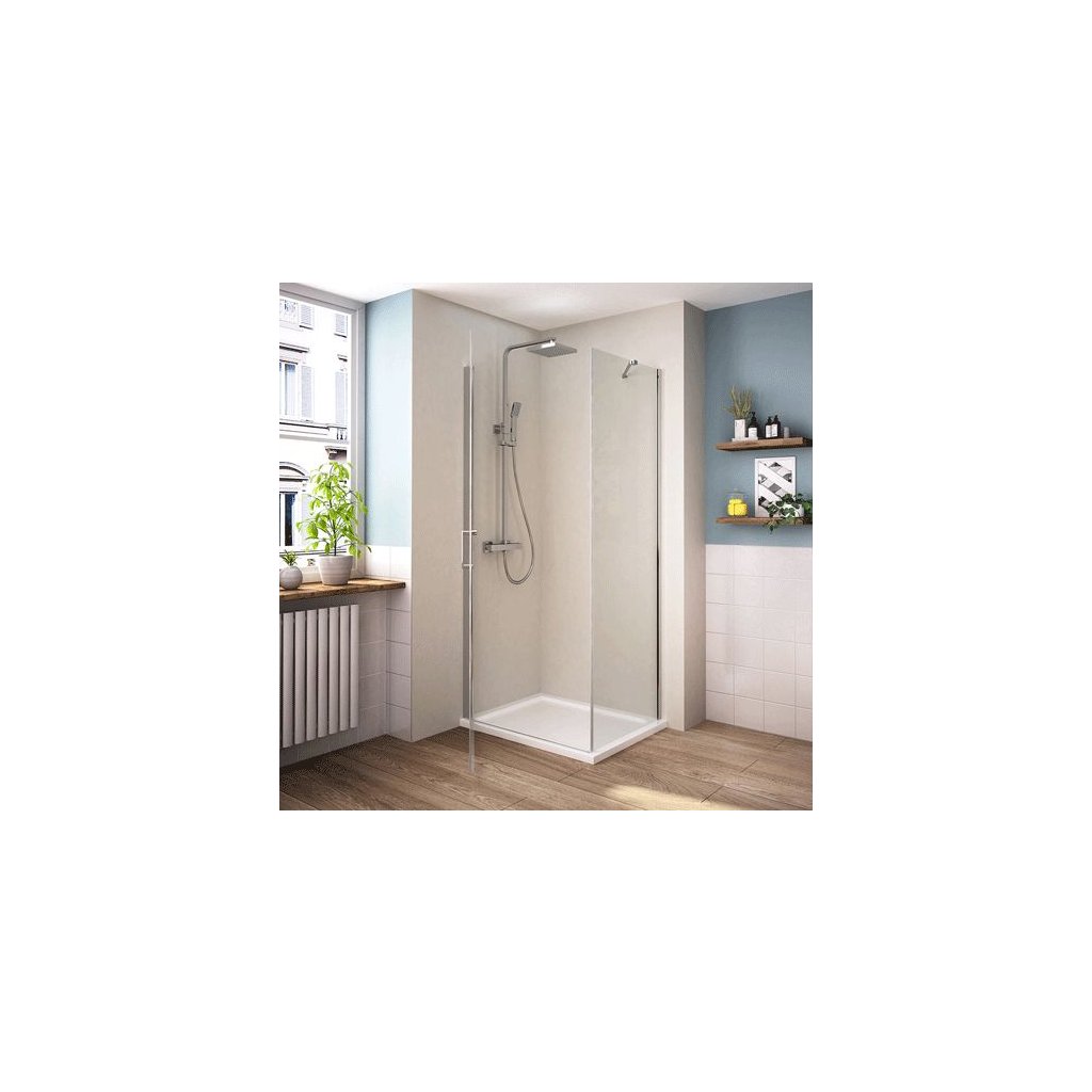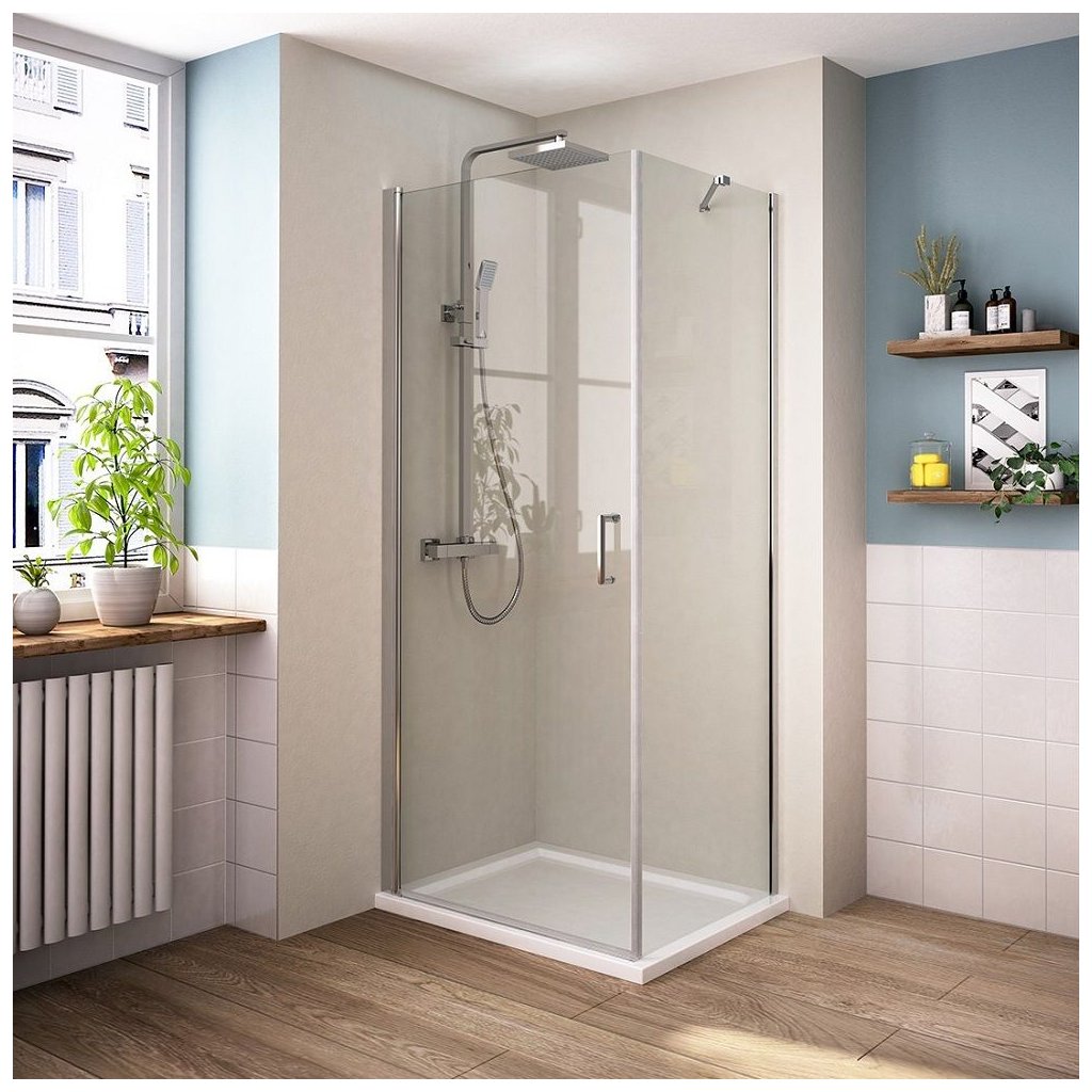 Veľmi kvalitné prevedenie štvorcového sprchovacieho kúta Sanovo PERFECT s jednokrídlovými otvárateľnými dverami s pevnou stenou.