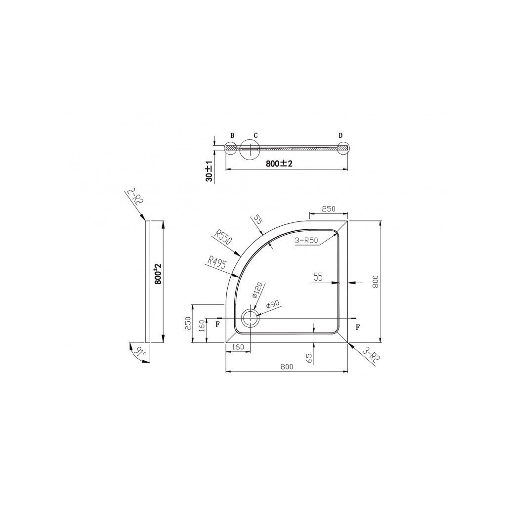 Štvrťkruhová sprchová vanička z liateho mramoru Sanovo STAR 80x80x3 cm